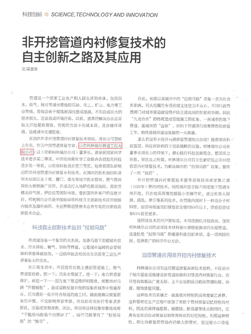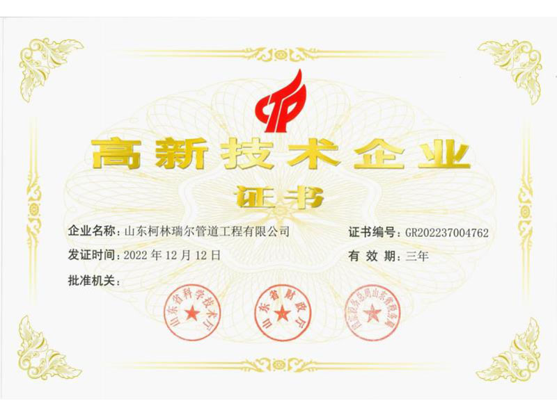 山東柯林瑞爾管道工程有限公司是國家級高新技術(shù)企業(yè),水資源節(jié)約與保護產(chǎn)業(yè)創(chuàng)新聯(lián)盟理事單位。公司與中國石油大學(華東)、北京化工大學等多家知名院校和國家實驗室建立了長期密切的合作關(guān)系。公司被評為“山東省專利明星企業(yè)”,“質(zhì)量信得過單位”,“企業(yè)信用AAA級單位”,山東省“專精特新”企業(yè)。